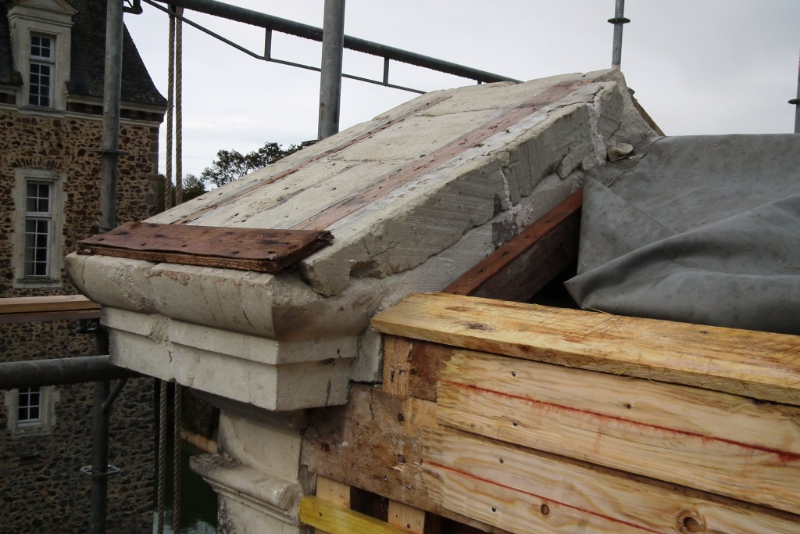 – Zinc protégeant le couronnement en tuffeau à refaire