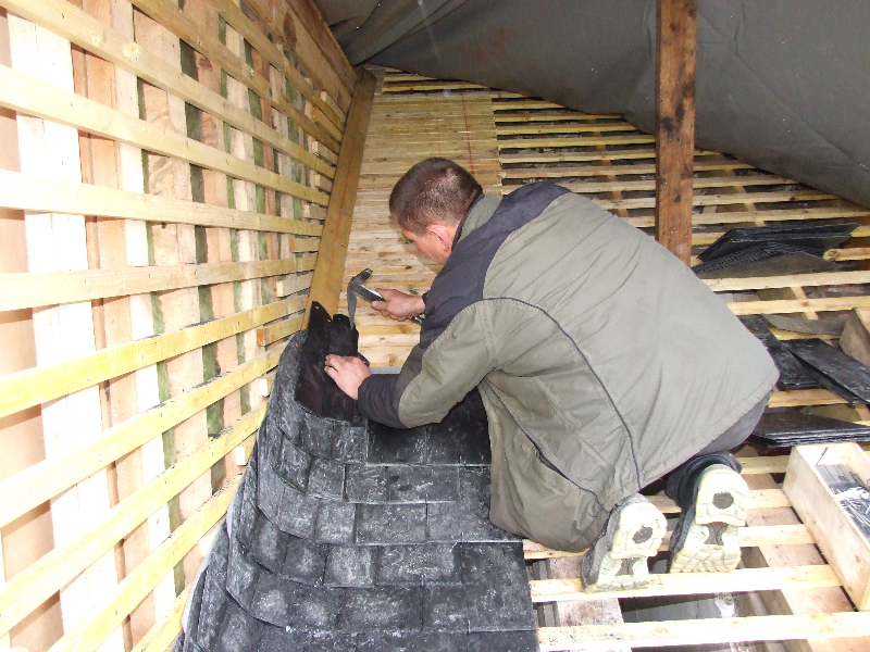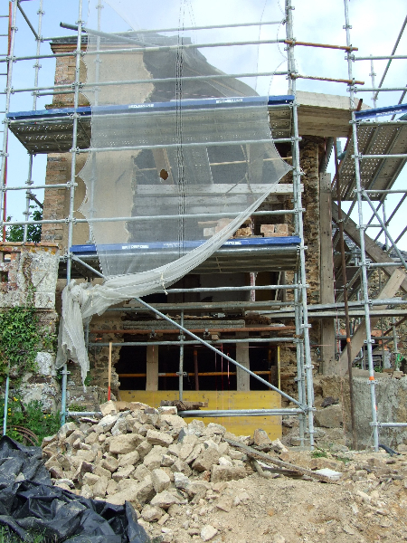 en place. La souche de cheminée est remise en état.