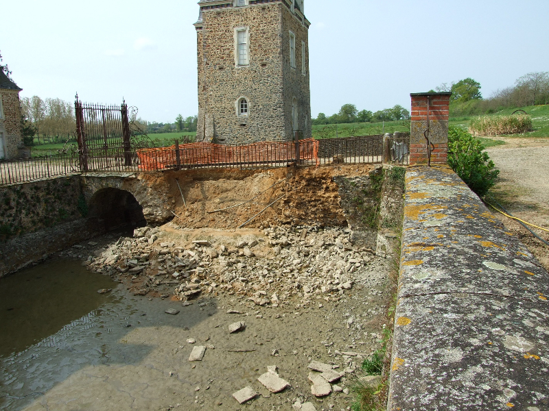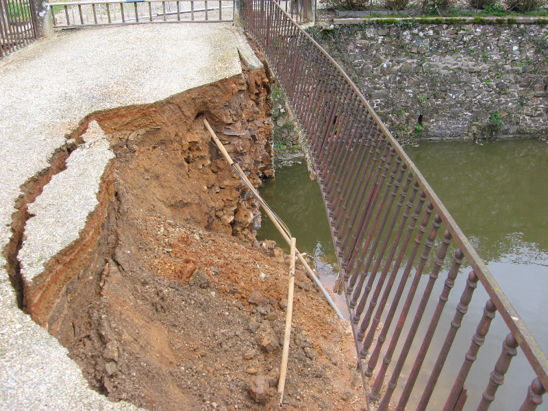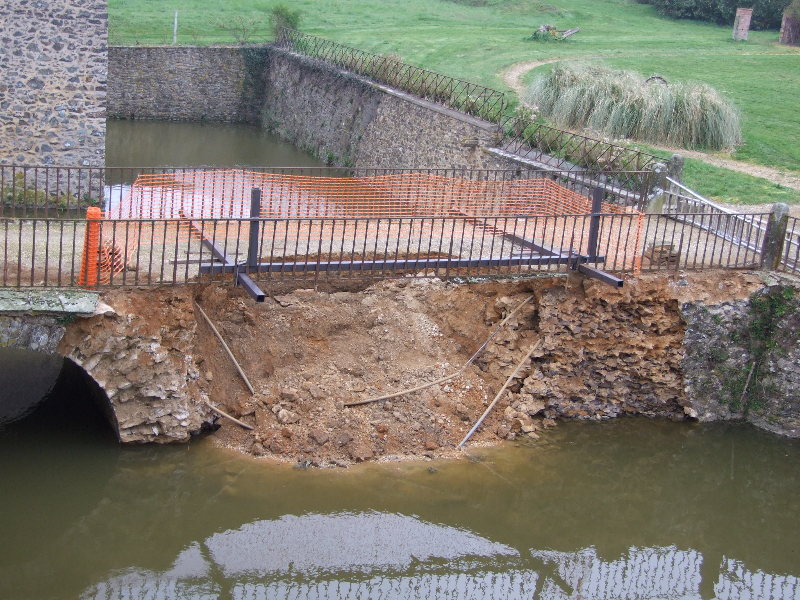 Printemps 2007 : probablement à la suite de pluies diluviennes, un côté du pont d’accès au château s’effondre brutalement, rendant l’accès à la cour dangereux.