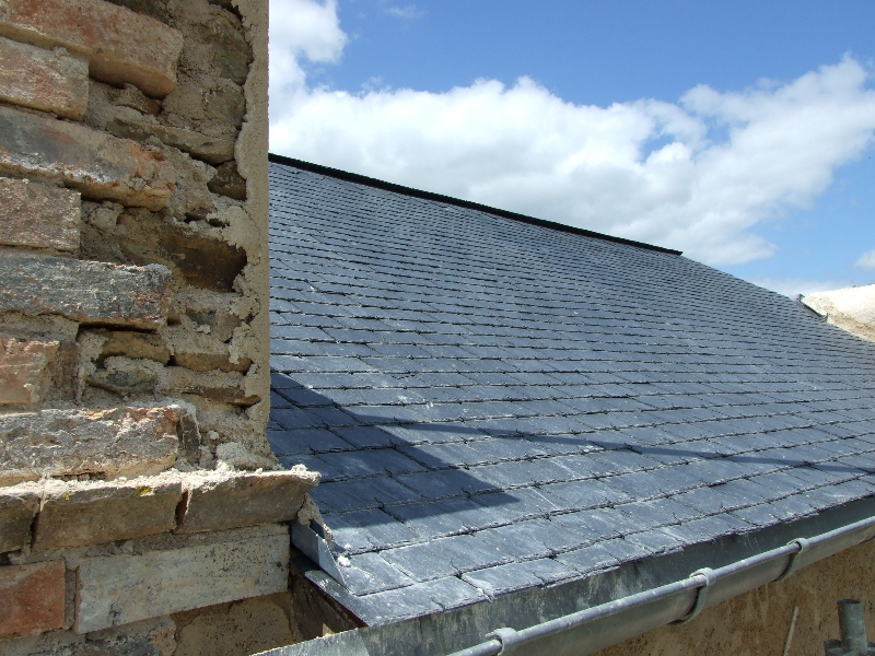 – couverture: ardoises déplacées et manquantes: réfection en totalité en ardoises d’Angers-Trélazé,