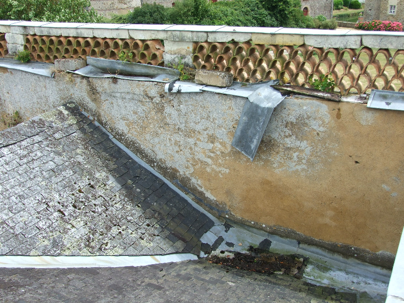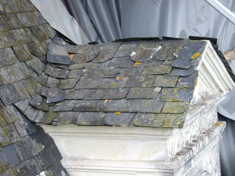 2011-2013 : L’ensemble des toitures du château est repris petit à petit: fuites dues à des ardoises tombées ou déplacées, corniches en mauvais état, lucarnes abîmées, cheminée penchant dangereusement, épis de faîtage abîmés, voire tombés.