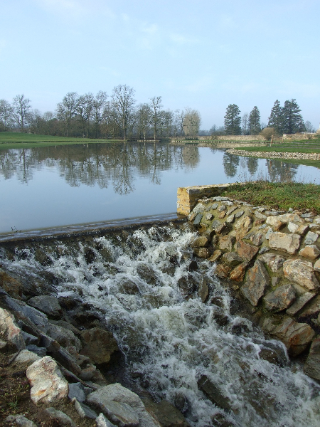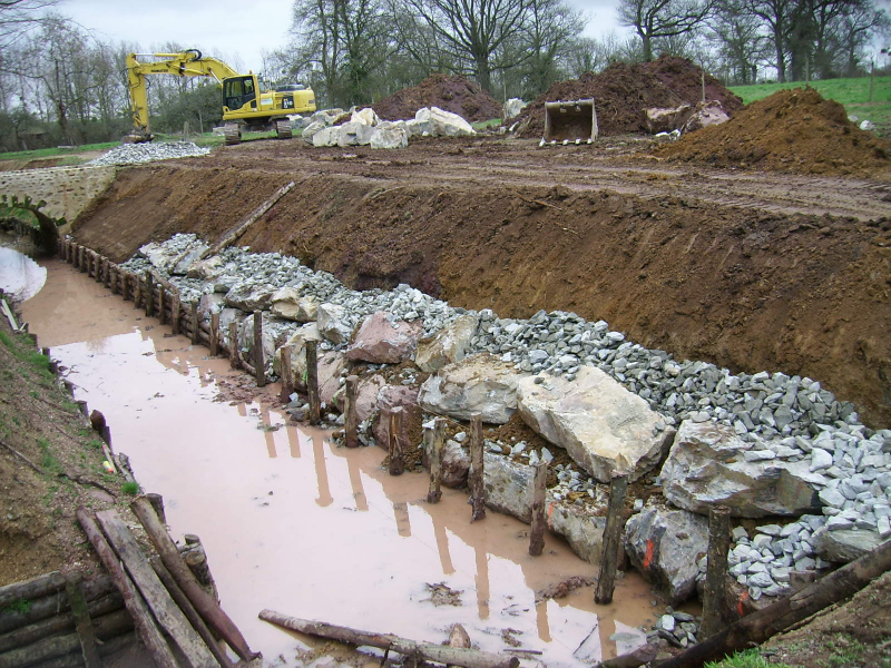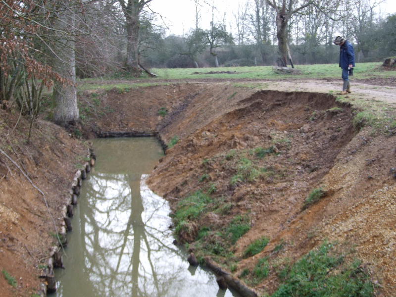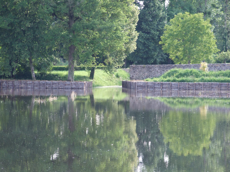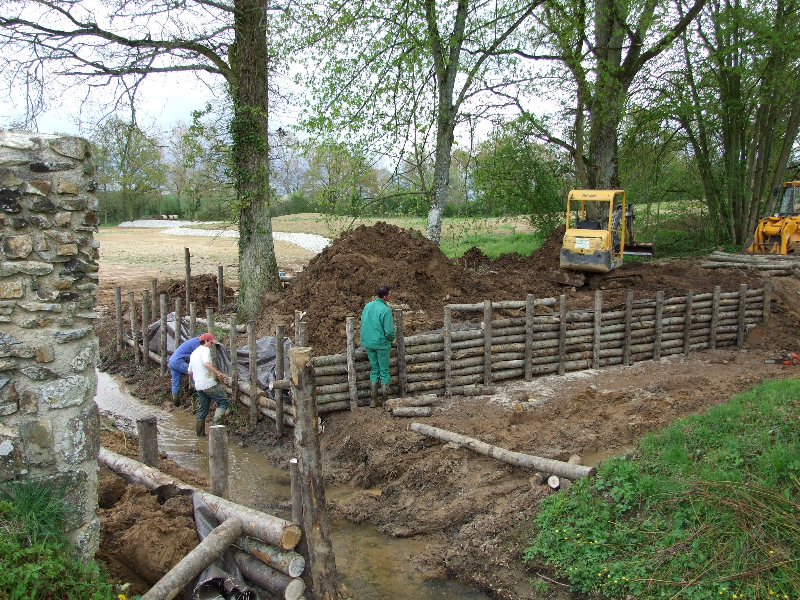 • Renforcement des berges rectilignes ouest et nord par des pieux de châtaignier
